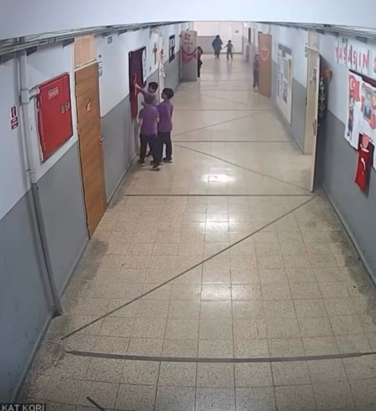 O anlar okulun güvenlik kameraları tarafından saniye saniye kaydedilirken, minik yüreklerin sergilediği duyarlılık izleyenlerin takdirini topladı.