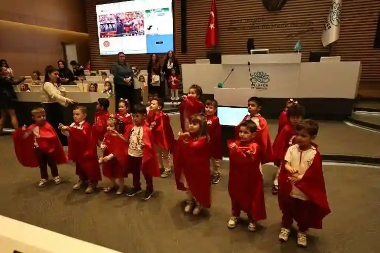 23 Nisan Ulusal Egemenlik ve Çocuk Bayramı çerçevesinde Nilüfer Belediyesi’ni ziyaret eden minikler, sundukları gösterilerle herkese bayram coşkusu yaşattı.