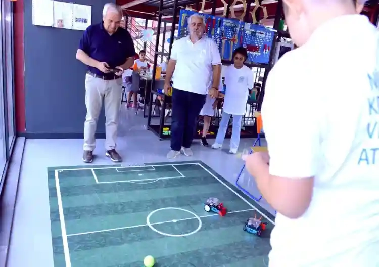 Her bir öğrenciyle yakından ilgilenen ve projelerini dikkatle dinleyen Nilüfer Belediye Başkanı Şadi Özdemir, çocukları başarılarından dolayı tebrik etti. Başkan Şadi Özdemir, burada çocukların kodlamayla yaptıkları müzik aletlerini çalarak öğrencilerin hazırladığı bilgisayar oyunlarını oynadı. Öğrencilerin yapay zeka uygulamalarıyla hayata geçirdikleri yaş tahmini ve robot yönlendirme uygulamalarını deneyen Şadi Özdemir, çocukların ahşap modellemeyle ortaya çıkardıkları ürünleri inceledi ve robotlarla futbol maçı oynadı.