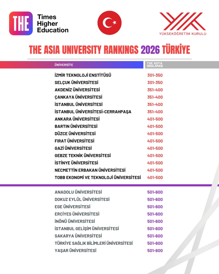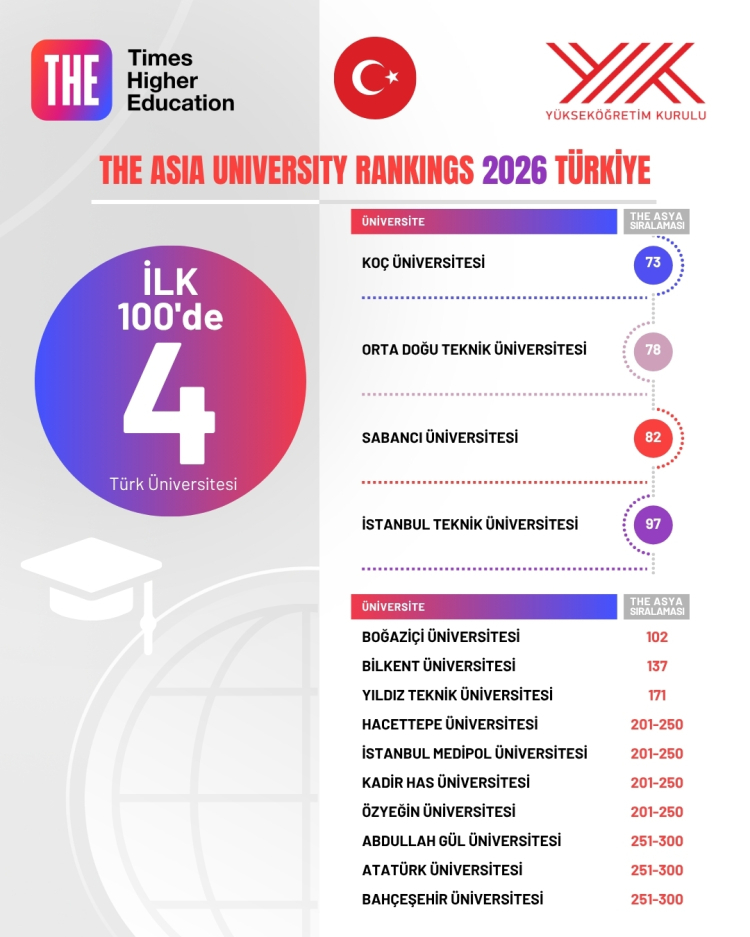 THE 2026 Asya sıralamasında Türkiye ilk 3’te yer aldı