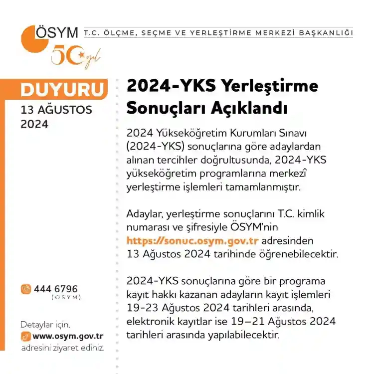 ÖSYM, YKS sonuçlarını açıkladı.