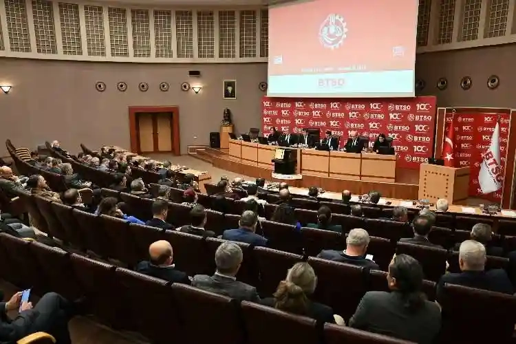 BTSO Aralık Ayı Meclis Toplantısı Oda Hizmet Binası’nda gerçekleştirildi. BTSO Başkanı İbrahim Burkay, kente ve Türkiye’ye karşı taşıdıkları sorumluluğun bilinciyle yoğun bir çalışma yılını daha geride bıraktıklarını söyledi. Başkan Burkay, küresel ölçekteki gelişmelerin yanı sıra ülke olarak 2023 yılında asrın felaketini yaşadıklarını hatırlattı. Depremin yaralarını sarmak için iş dünyası olarak devletle birlikte omuz omuza büyük bir seferberlik başlattıklarını dile getiren İbrahim Burkay, 2023 yılının gerek küresel konjonktürden kaynaklanan gelişmeler gerekse de iç piyasada yüksek enflasyon ve fiyat istikrarsızlığı nedeniyle iş dünyası için oldukça zor bir yıl olarak tamamlandığını belirtti.