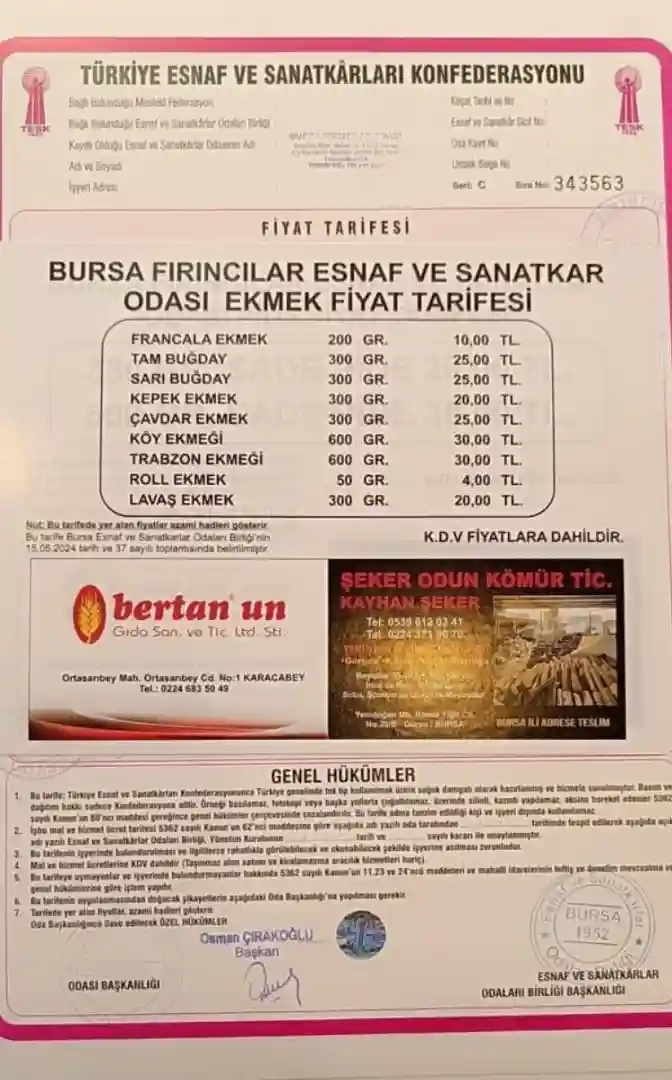 Bursa’da Ocak ayında 250 gram olarak üretilen ekmek 10 liradan tezgahta yerini alırken, artan maliyetlerden dolayı Bursa Esnaf ve Sanatkarlar Odaları Birliği 15 Mayıs tarihinde bir araya geldi. Alınan karar gereği, fiyatta değişiklik yapılmazken, gramajda indirime gidildi. 15 Mayıs tarihine kadar 250 gram francala ekmek 10 liradan tezgahta yerini alırken, bu tarihten itibaren aynı fiyata ancak 200 gram olarak satışa sunulacak. Aynı şekilde fiyatları 20 ve 25 lira olan tam buğday, sarı buğday, kepekli ve çavdar ekmeği ise 400 gramdan 300 grama indirildi. 30 liradan satılan köy ve Trabzon ekmeği ise 700 gramdan 600 grama geriledi. Tek zam gelen ise roll ekmek oldu. 50 gramı 3,5 liradan satılan roll ekmek, 4 lira oldu.