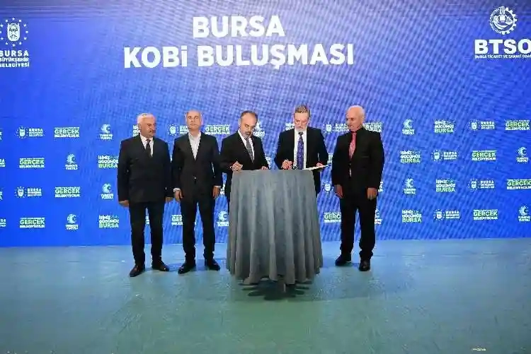 Konuşmaların ardından Bursa Milletvekili Efkan Ala, Bursa Büyükşehir Belediye Başkanı Alinur Aktaş ve BTSO Yönetim Kurulu Başkanı İbrahim Burkay KOBİ OSB ile ilgili iyi niyet ve işbirliği çerçeve protokolüne imza attı.
