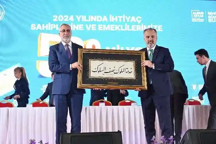 Bursa’nın Anadolu kültür kodlarının, kadirşinaslığın, hoşgörünün de şehri olduğunu belirten Işıkhan, “Devlet geleneğimizin en ince ayrıntısına kadar yaşatıldığını ve ayakta tutulduğunu Bursa’da gördük. Bizler de insanlarımızın yanında olmaya çalışıyoruz. Bursa Büyükşehir Belediye Başkanı Alinur Aktaş’a bilhassa emekliler açısından yürüttüğü çalışmadan dolayı teşekkür ediyorum. Bizler de kurum olarak emeklilerimiz için çalışmaya ve mücadele etmeye devam ediyoruz. Bir defaya mahsus bütün emeklilerimize 5 bin TL ikramiye ödeneğimizi yaptık. Emekli aylıklarında artış oranını bütün emeklilerimiz için yüzde 49,25 olarak belirledik. 2024 yılını ‘Emekliler Yılı’ olarak ilan ettik. Emeklilerimizin yanında olmayı sürdüreceğiz. Bursa Büyükşehir Belediyesi’nin emeklilerimiz için açıkladığı çalışmanın Bakanlık olarak sonuna kadar yanındayız. Protokolde emeği geçen Başkanımız Alinur Aktaş başta olmak üzere tüm kurumlarını kutluyorum. Hayırlı uğurlu olsun” diye konuştu.