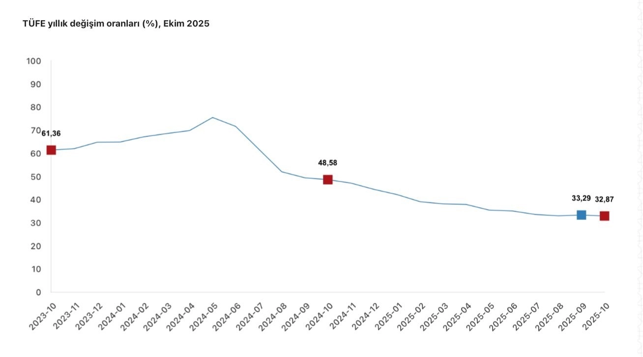 Yılmaz, orta vadeli hedeflere uyumlu politikanın korunduğunu belirterek, "Tüketici enflasyonu ekim ayında yüzde 2,55 oranında gerçekleşirken, gıda fiyatlarında don ve kuraklığa bağlı olumsuz etkilerin hız kestiği, enerji fiyatlarındaki ılımlı seyrin devam ettiği, hizmet enflasyonunun ise belirgin şekilde yavaşladığı görülmektedir. Giyim ve ayakkabı fiyatları ise geçen senin aynı ayında olduğu gibi geçici şekilde artış kaydetmiştir. Ekim ayında yıllık enflasyon yüzde 32,87’ye gerilemiş olup dezenflasyon süreci devam etmektedir. Bu görünüm, orta vadeli hedeflerle uyumlu patikanın korunduğuna işaret etmektedir" açıklamasında bulundu.