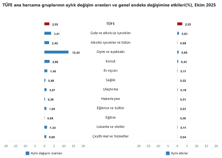 Türkiye İstatistik Kurumu (TÜİK), 2025 Ekim ayı Tüketici Fiyat Endeksi (TÜFE) verilerini açıkladı.
