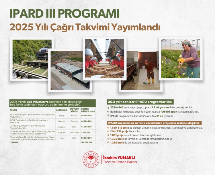 IPARD III Programı kapsamında 2025 yılı çağrı takvimi belli oldu.
