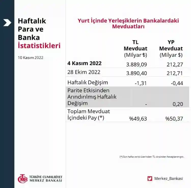 Merkez Bankası haftalık "Para ve Banka İstatistikleri"ni yayımladı.
