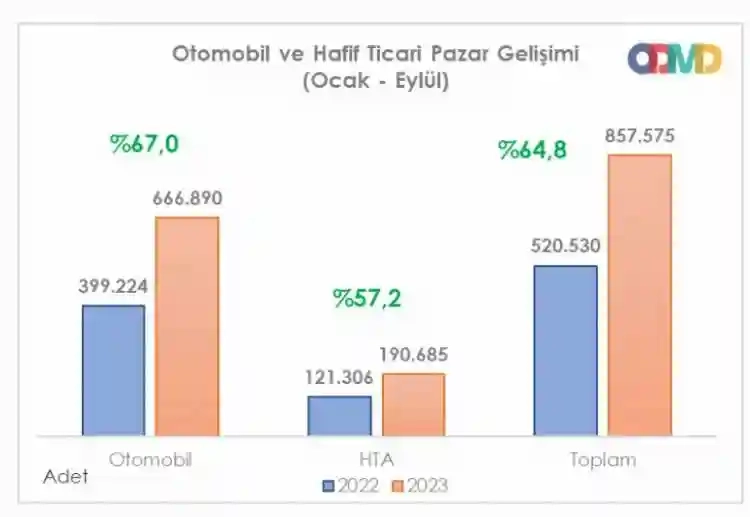 Böylelikle otomotivde eylül ayı rekoru kırıldı. Eylül ayında otomobil satışları bir önceki yılın aynı ayına göre yüzde 76,7 artarak 78 bin 971 adet olurken, hafif ticari araç pazarı yüzde 2,4 artarak 17 bin 822 adet oldu.