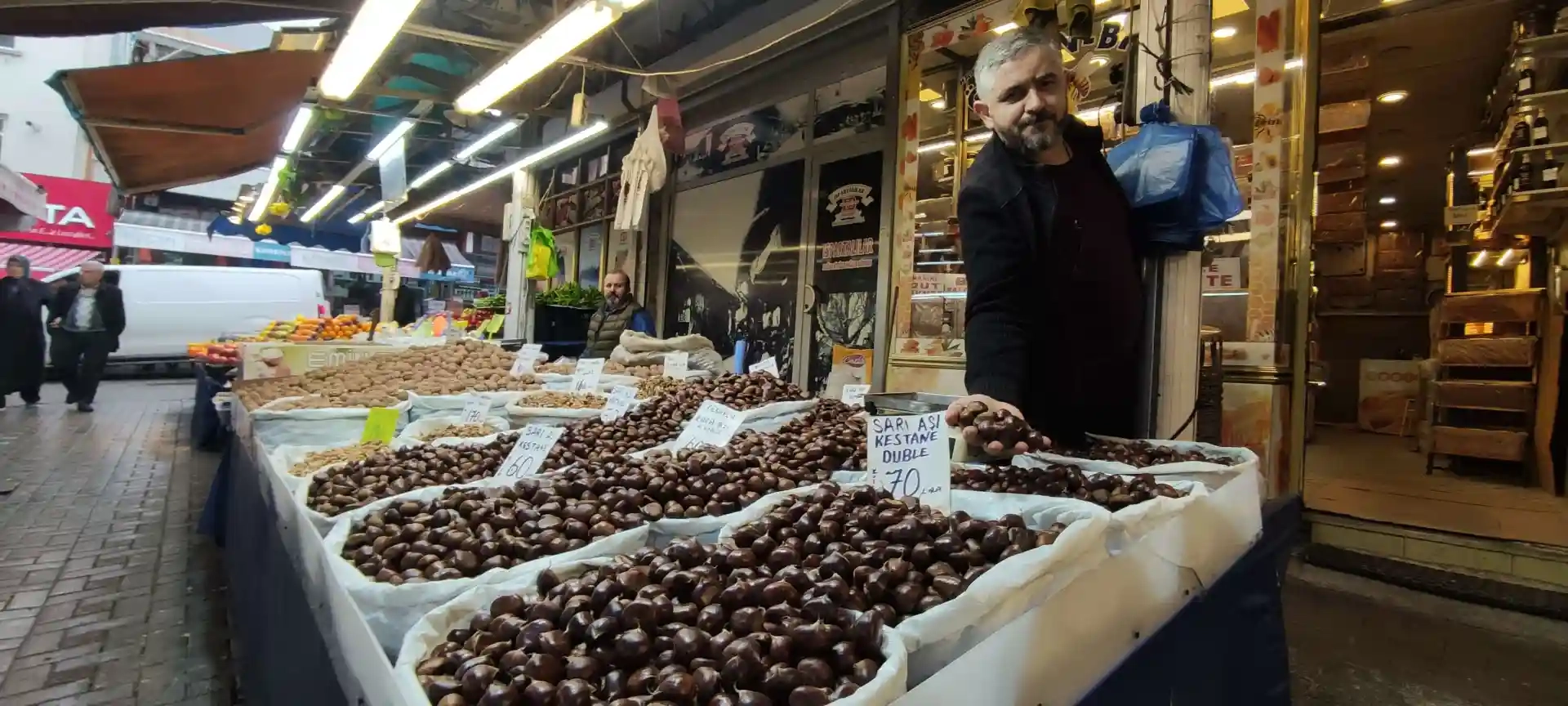 Bursa'nın tarihi Tuzpazarı'nda tezgah açan Kemal Ayaz, "Yeni sezonda fiyatı en az artan ürün kestane. Uzun süredir kestane satıyorum. Geçtiğimiz sezon en son 60 liradan satışı yapmıştık. Yeni ürünler geldi. Biz de satmaya başladık. Geçen sezon 60 liradan sattığımız kestane yeni sezonda 70 liradan satıyoruz. Çok küçük bir artış var. Vatandaşlar kış mevsiminin gözdesi kestaneye talep gösteriyor" dedi.