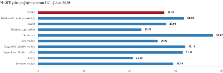 Türkiye İstatistik Kurumu (TÜİK), 2026 yılı Şubat ayına ilişkin Yurt İçi Üretici Fiyat Endeksi (Yİ-ÜFE) verilerini yayımladı.