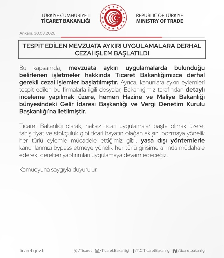 Bakanlık açıklamasında, bu tür usulsüzlüklerin hem kamu gelirlerinde kayba hem de piyasa dengesinin bozulmasına yol açtığını kaydetti.