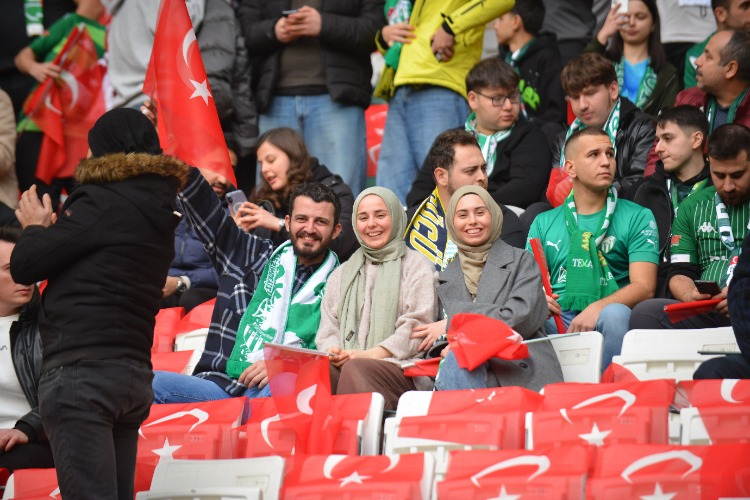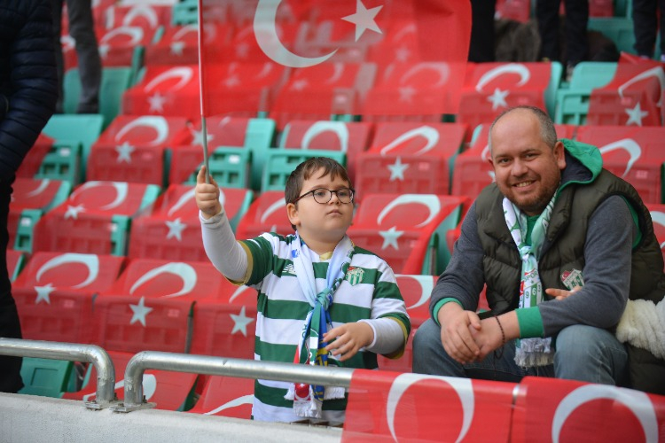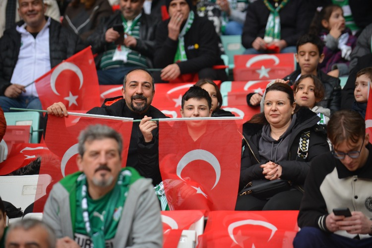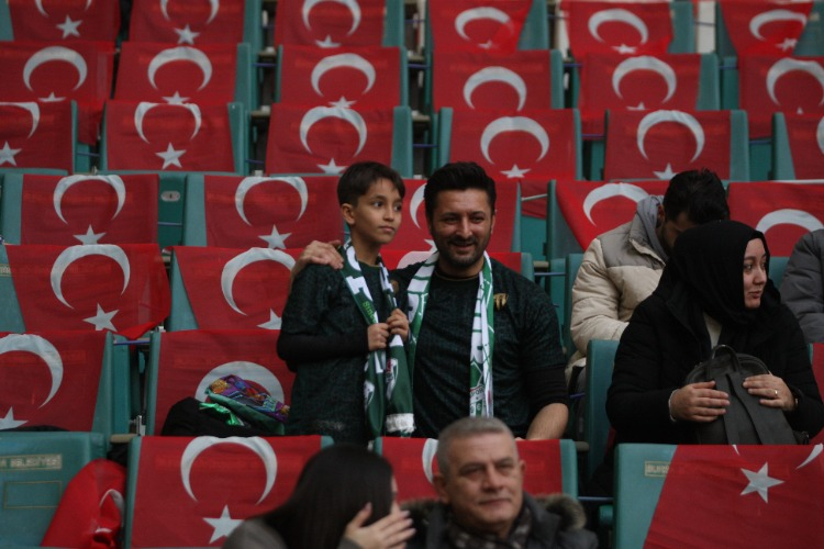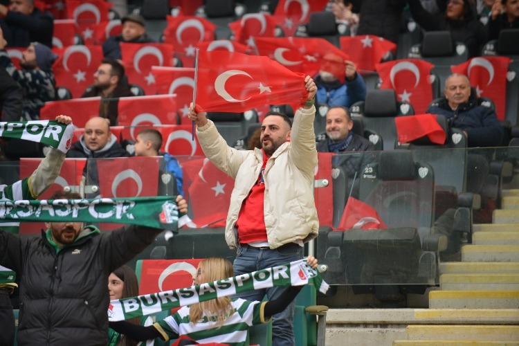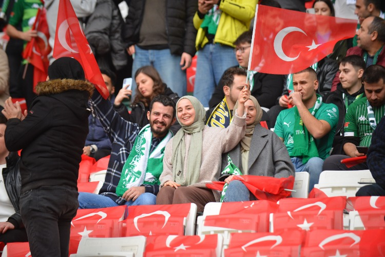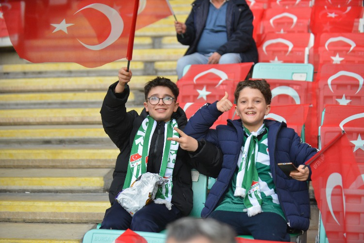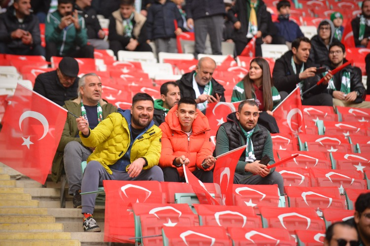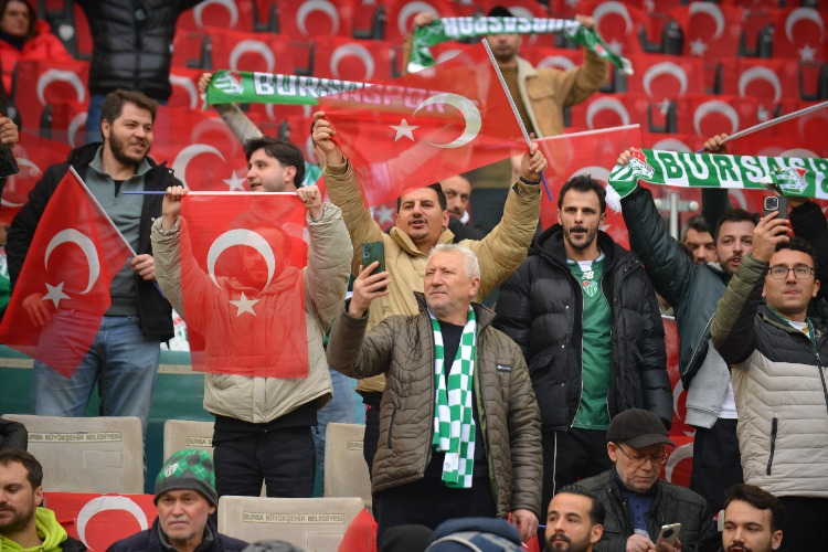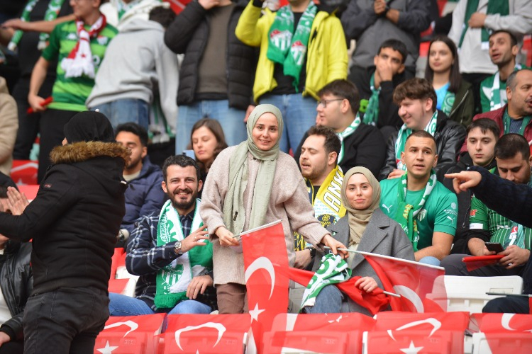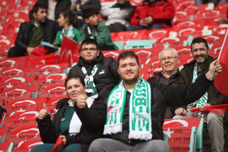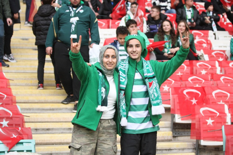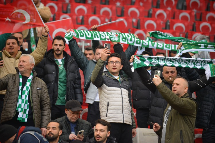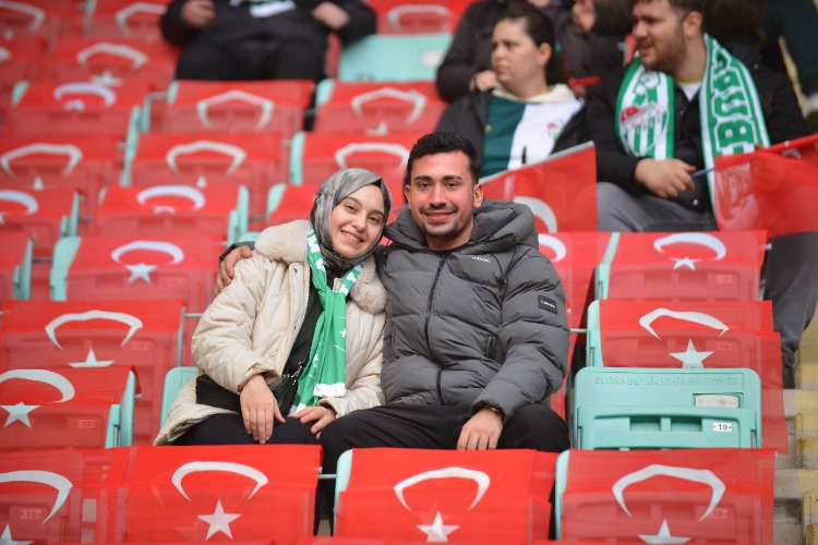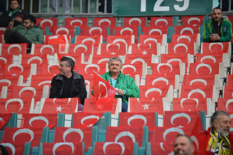 Bursaspor'un Mersin İdman Yurdu'nu 3-0 ile geçtiği karşılaşmadan taraftar manzaraları
