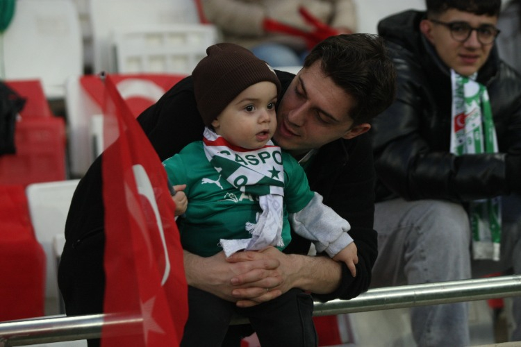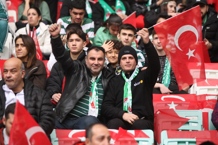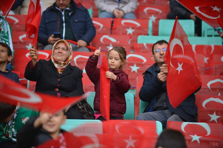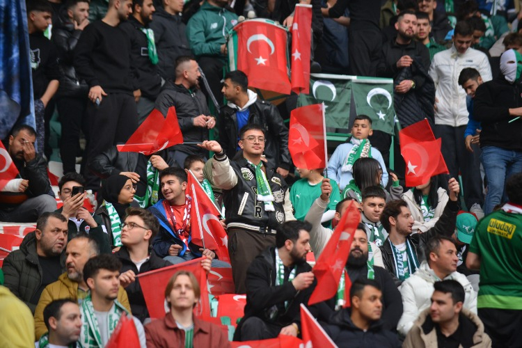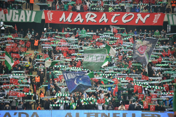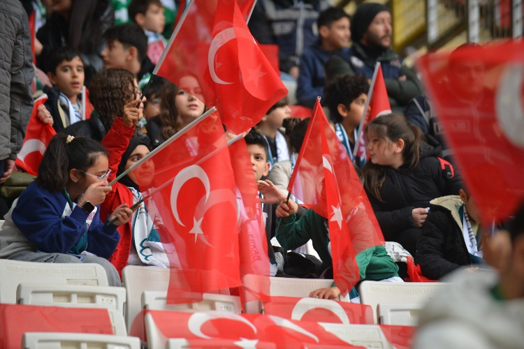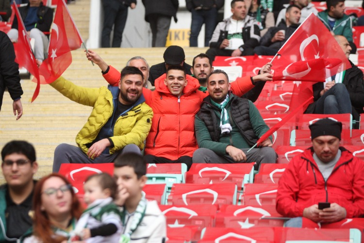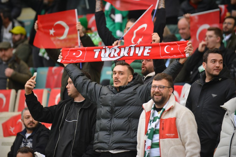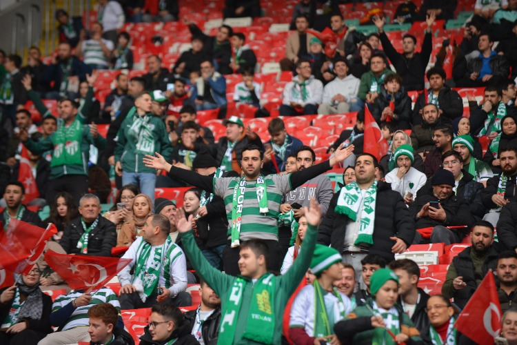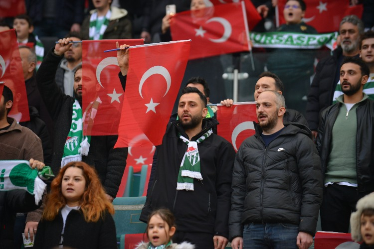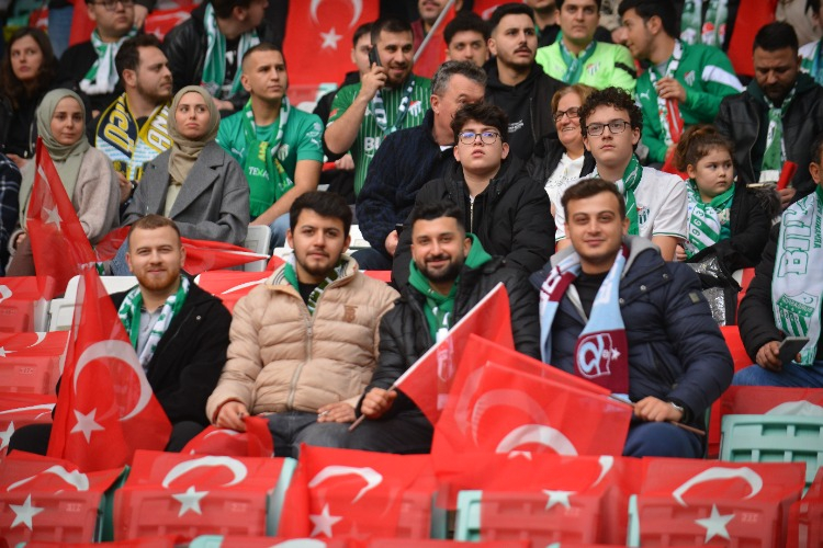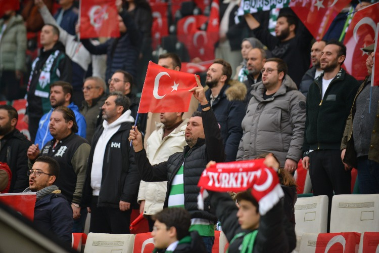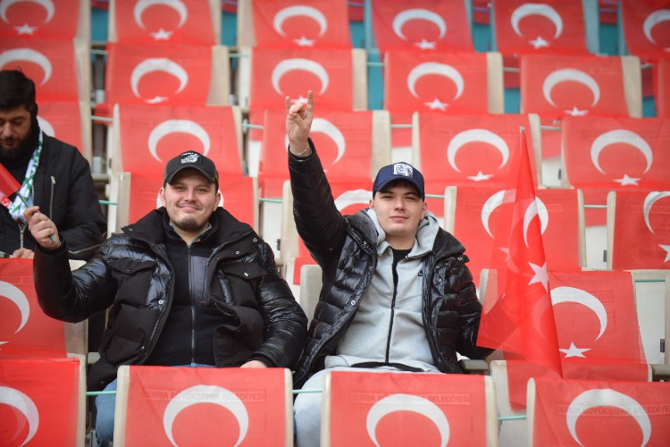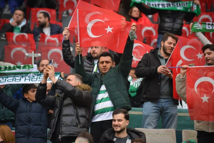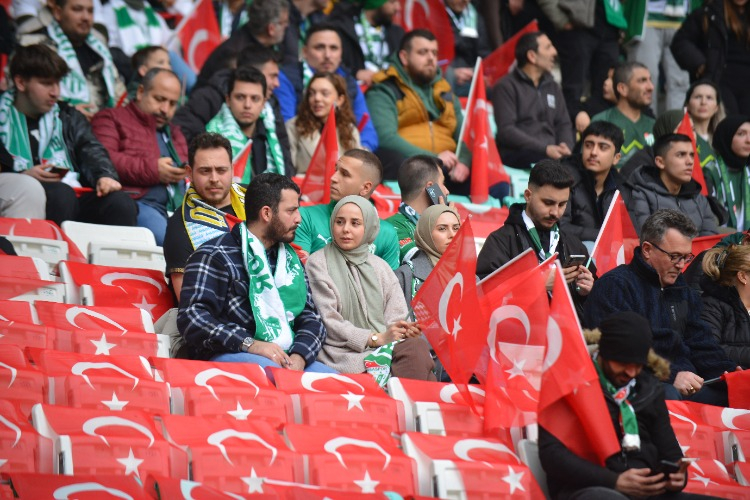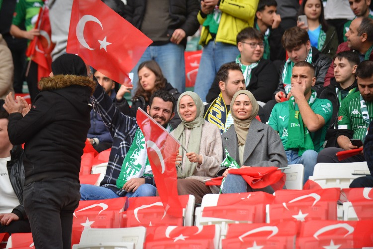 Bursaspor'un Mersin İdman Yurdu'nu 3-0 ile geçtiği karşılaşmadan taraftar manzaraları