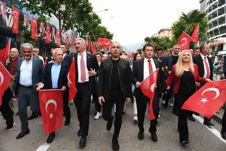 19 Mayıs Atatürk’ü Anma, Gençlik ve Spor Bayramı coşkusunun Bursa caddelerine taştığı yürüyüşe, Osmangazi Belediye Başkanı Erkan Aydın ile birlikte Bursa Büyükşehir Belediye Başkanı Mustafa Bozbey, Nilüfer Belediye Başkanı Şadi Özdemir, CHP Bursa İl Başkanı Nihat Yeşiltaş, CHP Osmangazi İlçe Başkanı Cengiz Çelikten, meclis üyeleri ve on binlerce vatandaş katıldı. Ünlü şarkıcı Haluk Levent de kortejde yer alarak, Bursalı gençlerin bayram coşkusuna eşlik etti.