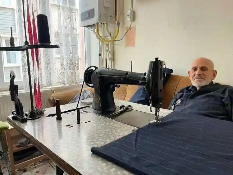 Bursa’nın Karacabey ilçesinde yaşayan terzi Feyzullah Çınay, 13 yaşında çırak olarak başladığı terzilik mesleğine ilk günkü heyecanıyla 70 yıldır ara vermeden devam ediyor. Yaklaşık 15 yıl önce kendi iş yerini kapatsa da kendisine talepte bulunan yakınlarını kıramayan Çınay, evinin balkonunu atölyeye çevirerek çalışmalarına devam ediyor. Kendisiyle yaşıt bir dikiş makinesi kullandığını söyleyen Çınay, makinesinin eski olmasına rağmen kendisi gibi hala güzel işler çıkardığını söylüyor.