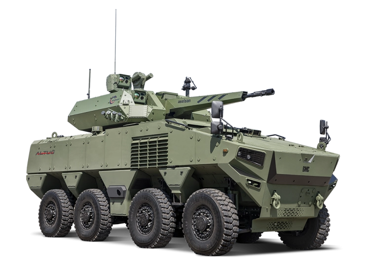 ALTUĞ 8x8 Zırhlı Muharebe Aracı (35 mm Kuleli), kendi sınıfında konvansiyonel ve asimetrik muharebe sahasının tüm ihtiyaçlarına cevap verebilecek şekilde tasarlandı. Araçlar en güncel kullanıcı gereksinimleri, görev konseptleri, tehditler, teknoloji ve trendler ile bu pazarda mevcut yerli ve yabancı araçların kabiliyetleri değerlendirilerek her yönüyle üstün özellikleriyle ön plana çıkıyor.