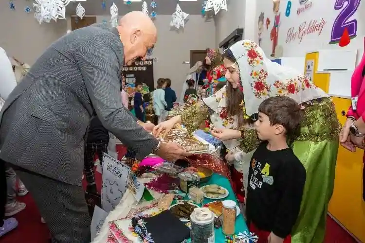 Bursa Büyükşehir Belediyesi’nin özellikle dar gelirli ailelerin çocuklarının da okul öncesi eğitim hizmetlerinden faydalanabilmesi amacıyla 2019 yılında başlattığı Ana Kucakları, zengin müfredatıyla çocukları geleceğe en iyi şekilde hazırlıyor. Bugüne kadar 5 binden fazla çocuğun eğitim aldığı Ana Kucakları’nda, Yerli Malı Haftası coşkuyla kutlandı. Türkiye’nin 7 bölgesine ait yöresel yiyecekleri yine yöresel kıyafetlerle tanıtan minikler, sergiledikleri dans figürleriyle de büyük alkış aldı. Sergiyi gezen öğrenciler, öğretmenleri tarafından Türkiye’de üretilen ürünler hakkında bilgilendirildi.