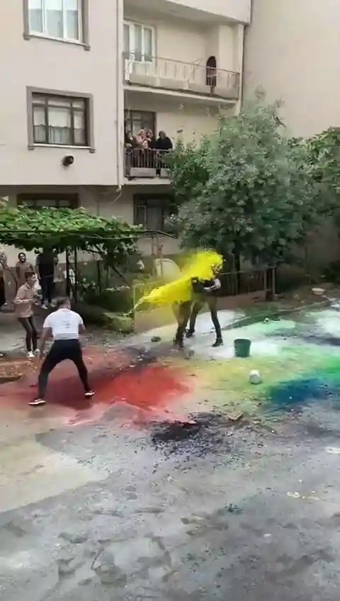 Damat; kendisini kıskaca alan arkadaşlarından, onlardan birine sarılarak kurtulmaya çalışsa da sırılsıklam olmaktan kurtulamadı. Yaşanan anlar vatandaşlar tarafından saniye saniye kayıt altına alınırken, gelenek sokağın yıkanıp temizlenmesiyle son buldu.