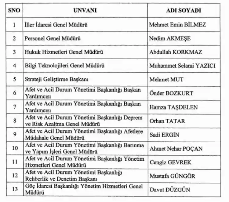 Ayrıca İçişleri Bakanlığı üst kademe kamu yöneticiliklerine de şu isimler tayin edildiç