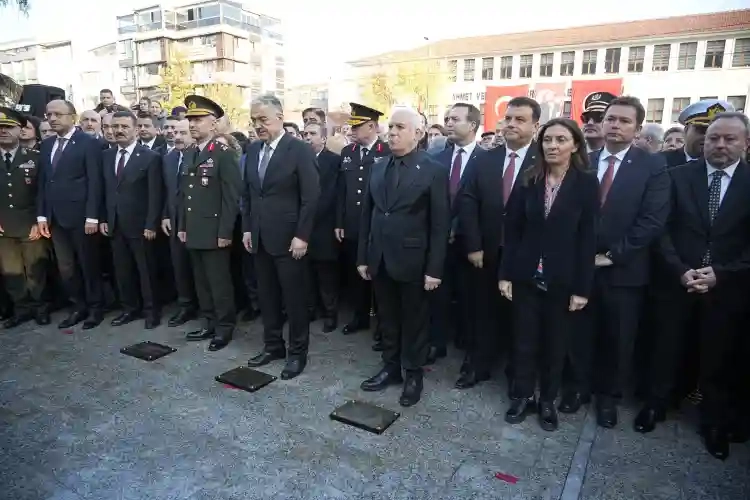 Türkiye Cumhuriyet'inin kurucusu Gazi Mustafa Kemal Atatürk, ebediyete intikalinin 86. yıl dönümünde anıldı. 10 Kasım programları çerçevesinde Bursa Valiliği tarafından ilk olarak çelenk sunma töreni gerçekleştirildi. Vali Erol Ayyıldız, Bursa Büyükşehir Belediyesi Başkanı Mustafa Bozbey, Atatürk heykeline çelenk sundu. Atatürk'ün hayata gözlerini yumduğu 09.05 geçe sirenler çalmaya başlamasıyla 7'den 70'e tüm halk 2 dakikalık saygı duruşuna geçti. Mustafa Kemal Atatürk'ün 86. yıldönümünde sirenlerle birlikte tüm hayat dururken, yolda, metroda, arabada, otobüste yakalananlar ise oldukları yerde saygı duruşuna geçti.