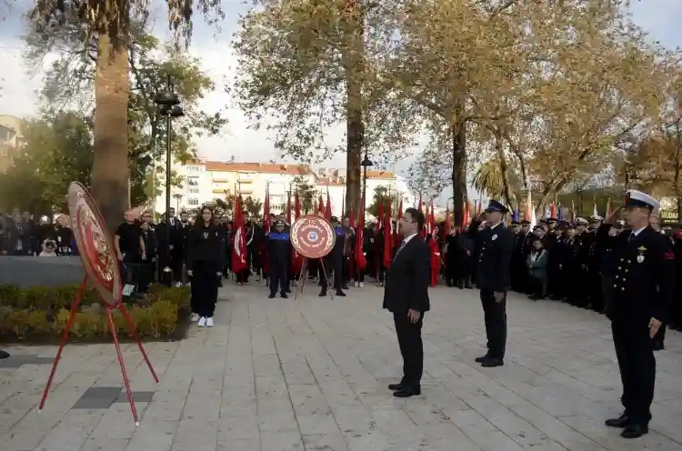 Anıta çelenklerin sunulmasının ardından Mustafa Kemal Atatürk'ün hayata gözlerini yumduğu saat 9'u 5 geçe, sirenler eşliğinde saygı duruşunda bulunuldu, İstiklal Marşı okundu ve bayraklar yarıya indirildi. Törenler, İlçe Milli Eğitim müdürlüğü Konferans salonunda devam etti.