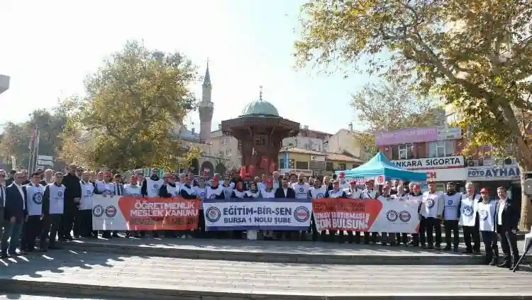 Eğitim-Bir-Sen Öğretmenlik Meslek Kanunu'nun bir meslek kanunu içerisinde olması gereken unsurları içinde barındıracak değişiklik ve düzenlemeler yapılması konusunda çağrıda bulunmak için tüm Türkiye’de ortak basın açıklaması düzenledi. Bursa’da ilk derse girmeyen öğretmenler 15 Temmuz Demokrasi Meydanı’nda buluştu.