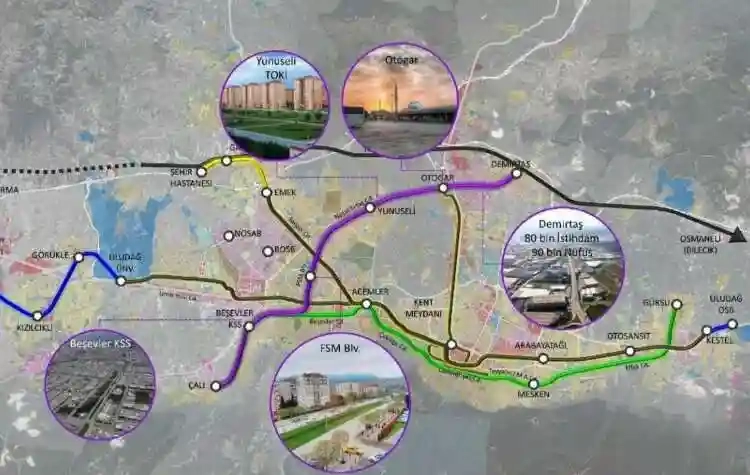 Bursa Büyükşehir Belediye Başkanı Alinur Aktaş, toplam 57 kilometrelik raylı sistem ağına yeni dönemde 32 kilometre daha ilave ederek 89 kilometreye çıkartacaklarını belirterek, “Üniversite-Görükle-Kurtuluş Hattı ile üniversiteden Görükle merkeze raylı sistemle erişimi sağlıyoruz. Kuzey güney yönünde olma özelliğiyle ilk olan Çalı-Demirtaş metro hattına da önümüzdeki dönem başlıyoruz” dedi.
