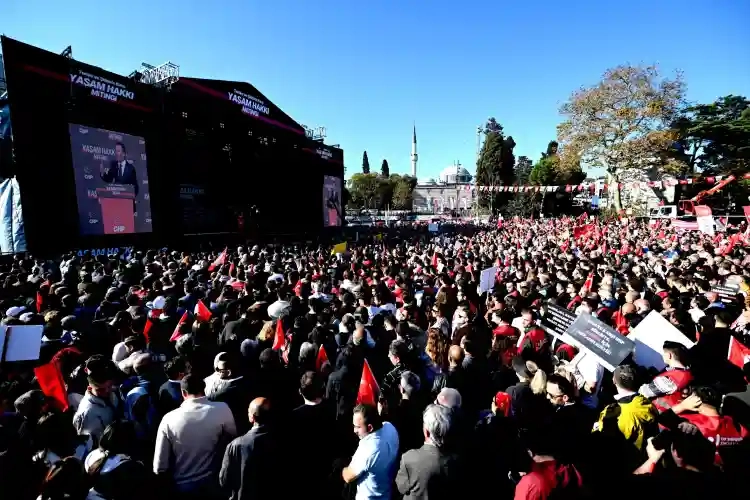 Cumhuriyet Halk Partisi tarafından Beşiktaş Meydanı’nda ‘Teröre ve Şiddete Karşı Yaşam Hakkı Mitingi’ düzenlendi. Alanda ‘İnsanlık için susma’, ‘“Kadınların hayalleri ölüyor, cinayetlere sessiz kalma’, ‘Bu Cumhuriyeti korkmayanlar kurdu, bu ülkeyi korkmayanlar kurtardı, biz de korkmuyoruz’ pankart ve dövizleri taşındı. Miting, 23 Ekim günü Türk Havacılık ve Uzay Sanayii’ne (TUSAŞ) yönelik düzenlenen terör saldırısında hayatını kaybedenler için bir dakikalık saygı duruşu ve İstiklal Marşı ile başladı. Ardından CHP Genel Başkanı Özgür Özel, sahneye çıkarak katılımcıları selamladı ve konuşma yaptı.
