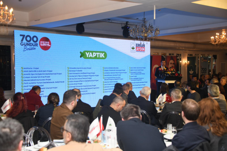 Toplantı öncesinde düzenlenen iftar yemeğinde basın mensuplarıyla yakından ilgilenen Başkan Erkan Aydın, daha sonra 700 günlük hizmet dönemine ilişkin açıklamalarda bulundu.