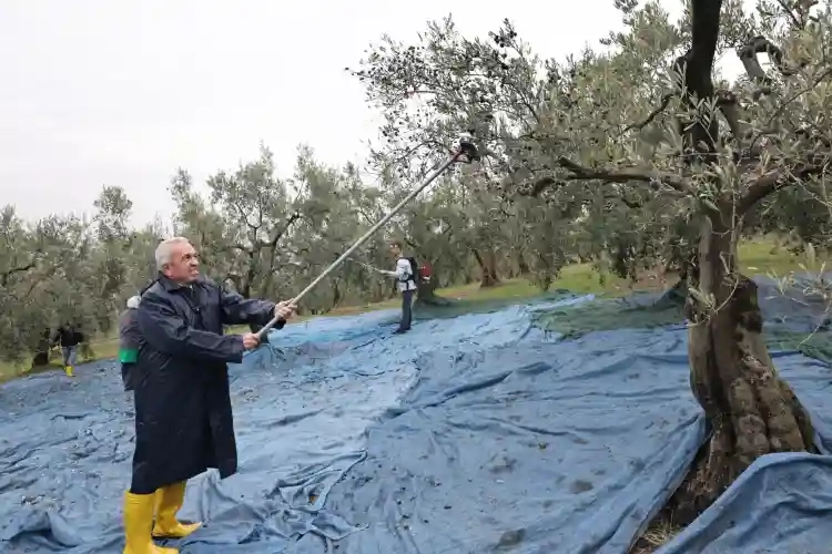 Başkan Şadi Özdemir zeytin hasadına katıldı