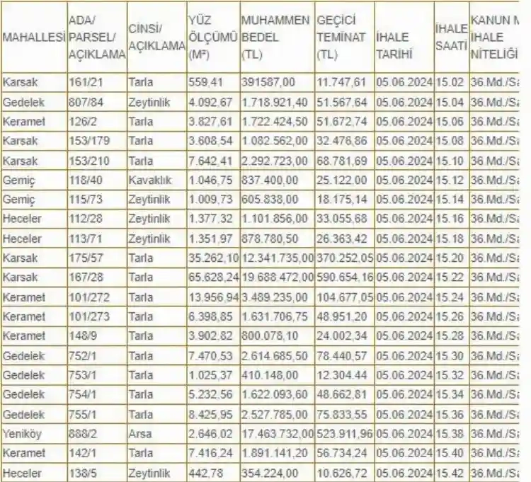 Orhangazi Belediyesi’nden Kamu İhale Kurumu’na bildirilen satış kararına göre Karsak, Gedelek, Keramet, Gemiç, Heceler ve Yeniköy Mahallelerinde yer alan 21 adet taşınmazı satışa çıkarıyor. Farklı metrekarelerdeki arsaların satışları ise 5 Haziran tarihine Orhangazi Belediyesi Encümeni tarafından yapılacak.