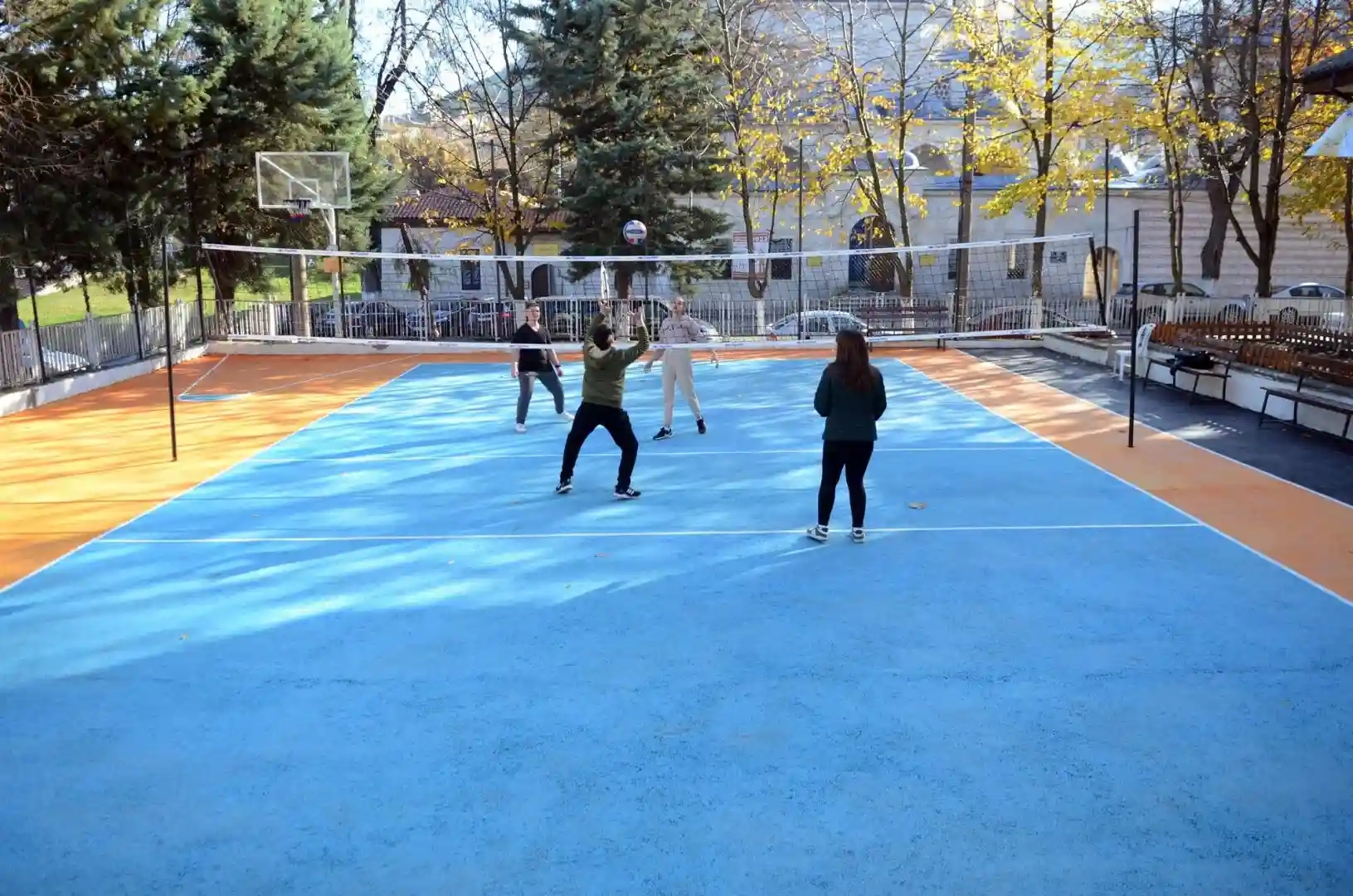 Tarihi okulda yaptıkları çalışmalar hakkında bilgi veren Başkan Dündar, dolgu çalışmasıyla sahanın yükseltildiğini, asfalt atılmasının ardından voleybol sahalarına uygun akrilik boya ile zeminin kaplandığını kaydetti. Dündar, spor sahasına basket potalarının yerleştirilmesinin yanı sıra oturma gruplarının da yenilendiğini söyledi.