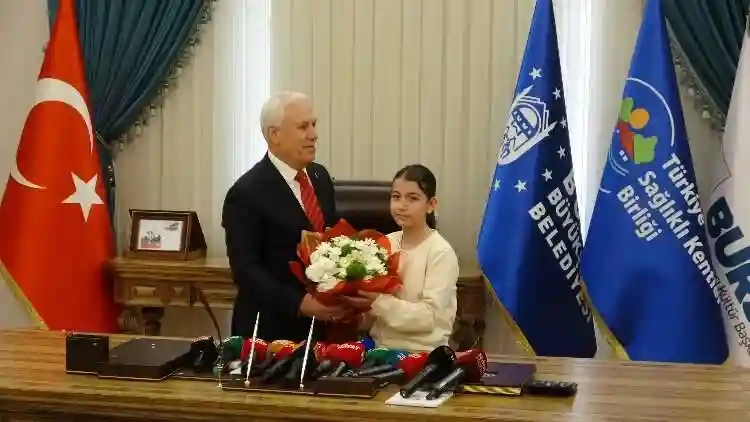 Bursa’da yurt genelinde olduğu gibi 23 Nisan Ulusal Egemenlik ve Çocuk Bayramı coşku ile kutlanırken Bursa Büyükşehir Belediye Başkanı Mustafa Bozbey, koltuğunu çocuklara devretti. 10 yaşındaki Zeyna Defne Kesmez 1 günlüğüne Bursa Büyükşehir Belediye Başkanı oldu.