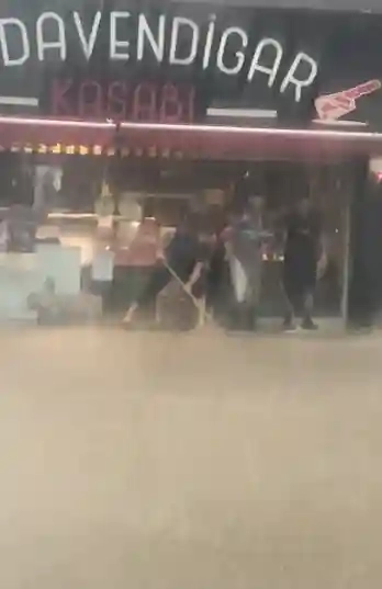 Ayrıca yağmur sebebiyle yayalar da zor anlar yaşadı. Bazı dükkanları basan suyu esnaf, kendi imkanlarıyla dükkanlarından boşaltmaya çalıştı.