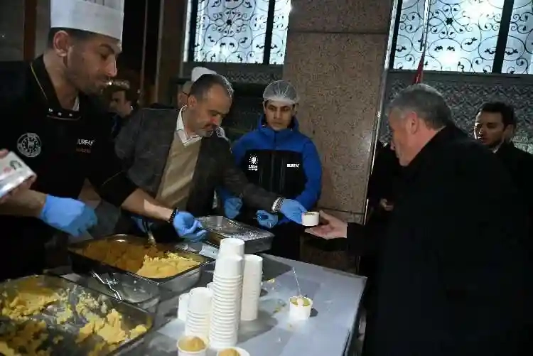 Bursalılar, Miraç Kandili münasebetiyle şehirdeki camilere akın etti. Büyükşehir Belediyesi Başkanı Alinur Aktaş da kandil dolasıyla Mihraplı Cami’de katıldığı programın ardından vatandaşlara helva ve süt ikramında bulundu.