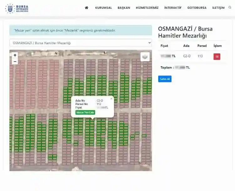 Mezarlıklara ait sayısal haritaların oluşturulması, defin bilgilerinin konumsal olarak sorgulanabilmesi ve analiz edilmesiyle, vatandaşın belediye binasına gelmeden tüm iş ve işlemlerini bilgisayar ve telefonlarından online olarak yapabilmelerine imkan sağlandı. Yenilenen web sayfası ve yeni yayınlanan Mobil Uygulama ile vatandaşlar; yakınlarına ait kabirlerin bilgilerine, konumuna, ve fotoğrafına ulaşabilecek, kabrin konumuna yol tarifi alabilecek. Mobil Uygulamada seçtikleri mahallelerde vefat olduğu anda bildirim alabilecek olan vatandaşlar, aynı zamanda mezar tahsis belgesini (aile mezarlığı) Mezarlık Bilgi Sistemi üzerinden online olarak alıp, ödeme yapabilecekler.