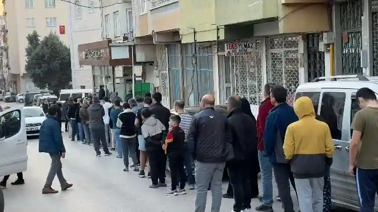 Ezan okunmasına rağman pide kuyruğunun sürdüğü görüldü.