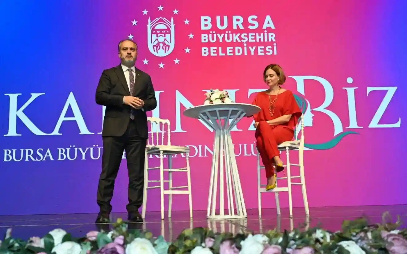 Bursa Büyükşehir Belediye Başkanı Alinur Aktaş da sahnedeki dev telefon ekranından hem uygulamayı tanıttı hem de Ceyda Düvenci’nin sorularını yanıtladı. Uygulamanın belediyenin öz kaynaklarıyla Bilgi İşlem Dairesi Başkanlığı tarafından geliştirildiğinin altını çizen Başkan Aktaş, “Her yıl yaptığımız saha çalışmaları sonucunda şehrimizde kadın hizmetleri ile ilgili kadınların beklentilerinin daha fazla olduğunu gördük. Kadınların toplumsal sorunlarına çözüm üretmek ve kadın çalışmalarımızı daha etkin kılmak adına Aile, Kadın ve Çocuk Hizmetleri Şube Müdürlüğümüzü kurduk. Büyükşehir Belediyesi olarak bu uygulamayla kadın çalışmalarını daha geniş kitlelere ulaştırmak, kadın dayanışmasını desteklemek ve sosyal hayata katılımlarını artırmak ana hedeflerimiz oldu. Eşitsizliklerin azaltılması, sorumlu üretim ve tüketim, sağlıklı ve kaliteli yaşam, kadın-erkek fırsat eşitliği ve kaliteli eğitim temel dayanaklarımız oldu. Uygulamamız, yerelde kadınlara rehber niteliğini taşıyor. Hem STK’lar hem yerel yönetimler hem de kamu kurumlarının çalışmalarını kapsayan çatı uygulama yaptık. Uygulamamızı Bursa Büyükşehir Kadın Kulübü adıyla marketlerden indirebilirsiniz” diye konuştu.