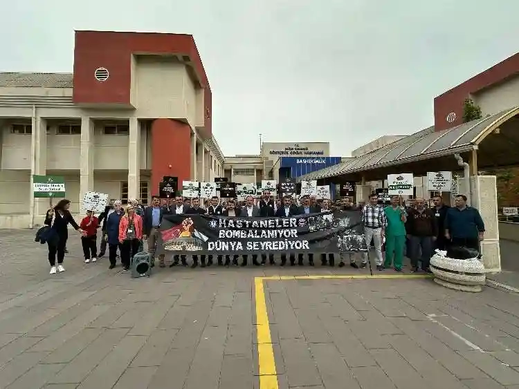 Şu ana kadar Gazze’ye atılan bombaların 12 bin ton olduğunu vurgulayan Yünkül, “Yazıklar olsun bu vahşeti görmeyenlere. Yazıklar olsun hastanelerin bombalanmasına göz yumanlara. Yazıklar olsun riyakarlık yaparak İsrail’e arka çıkanlara. Gazze’de hastane yok, ilaç yok, doktor yok. Yoğun bakımdaki bebekler çaresiz. Ölüme mahkûm edilmiş durumda. İnsan sağlığına hizmet eden kurumlara, hastanelere saldırı yapılması insanlık dışıdır, insanlık suçudur. Savaşlar dahil her dönemde hastaneler, saldırılmayan, en korunaklı alanlar olarak kabul görmüştür. Ancak bugün, katil İsrail, hastaneleri gözünü kırpmadan vurmaktadır. Katil İsrail’in hastaneye yaptığı hava saldırısında bebekler, çocuklar, kadınlar, yaşlılar, sağlık çalışanları hayatını kaybetmiştir. Bu saldırı, insanlık adına utanç vericidir. İnsanı yaşatmak için çaba gösteren sağlık çalışanının canına kast etmek insanlığı öldürmektir, vicdanlara savaş açmaktır. İnsan sağlığına hizmet eden kurumların hangi şartlarda, hangi gerekçe ile olursa olsun saldırıya maruz kalması kabul edilemez” ifadelerini kullandı.