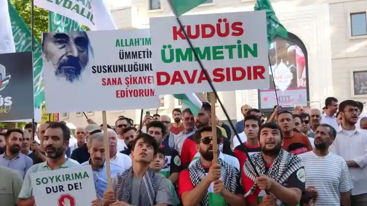 "Filistin halkı, yalnızca kendi topraklarını savunmamaktadır. İslam ülkelerinin izzetini ve şerefini de savunmaktadır. Hal böyleyken Müslümanlar resmi, sivil tüm unsurlarla ekonomik, askeri ve manevi dayanışma ile Müslüman kardeşlerinin yanında yer almalıdır. Filistinli Müslümanlar, işgale karşı direnişlerinde yalnız bırakılmamalıdır. ABD Kongresi'nde katil Netanyahu'nun alkışlanması, katliamlarında yalnız olmadığının en bariz göstergesidir. İnsan haklarından ve demokrasiden dem vurup, onbinlerce kadın ve çocuk katili olan Gazze kasabı Netanyahu'yu alkışlayan zihniyet katliamın en büyük ortağıdır. Hükümetimizden de Hamas Sözcüsü İsmail Haniye'yi Türkiye Büyük Millet Meclisi'nde konuşturması için çağrıda bulunuyoruz. Türkiye vatandaşı olup Filistin'deki katliama ortak olan kişilerin acilen ve derhal vatandaşlıktan çıkarılmasını talep ediyoruz. Bu kişilerin mal varlıklarına el konulmalı ve haklarında soykırıma ortak olunmasından dolayı bir an önce hukuki işlem başlatılmalıdır. Halkımızdan talebimiz şudur ki; boykotu hayatın her alanında uygulamalı, hem İsrail mallarını hem de İsrail destekçisi ve sevicilerinin mallarını