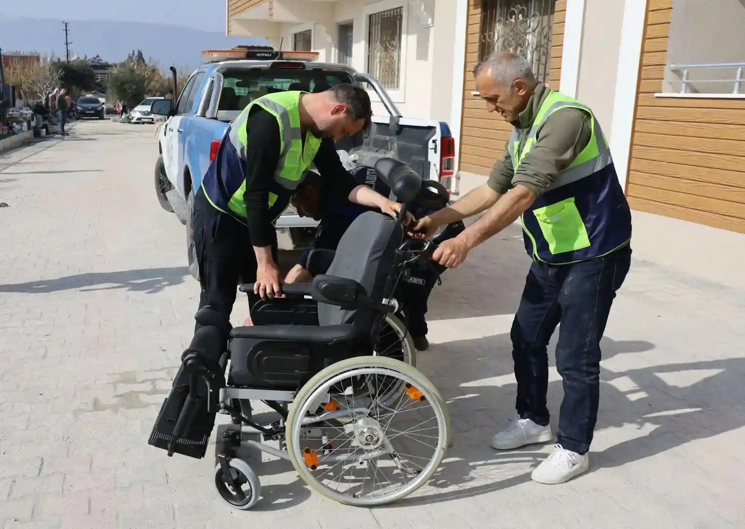 Hatay’da deprem mağduru vatandaşların yaralarını sarmak için mahalle mahalle gezen Bursa Büyükşehir Belediyesi ekipleri, ‘Serebral Palsi’ hastası bir gencin ihtiyaç duyduğu tekerlekli sandalyeyi Bursa’dan temin ederek ailesine teslim etti.