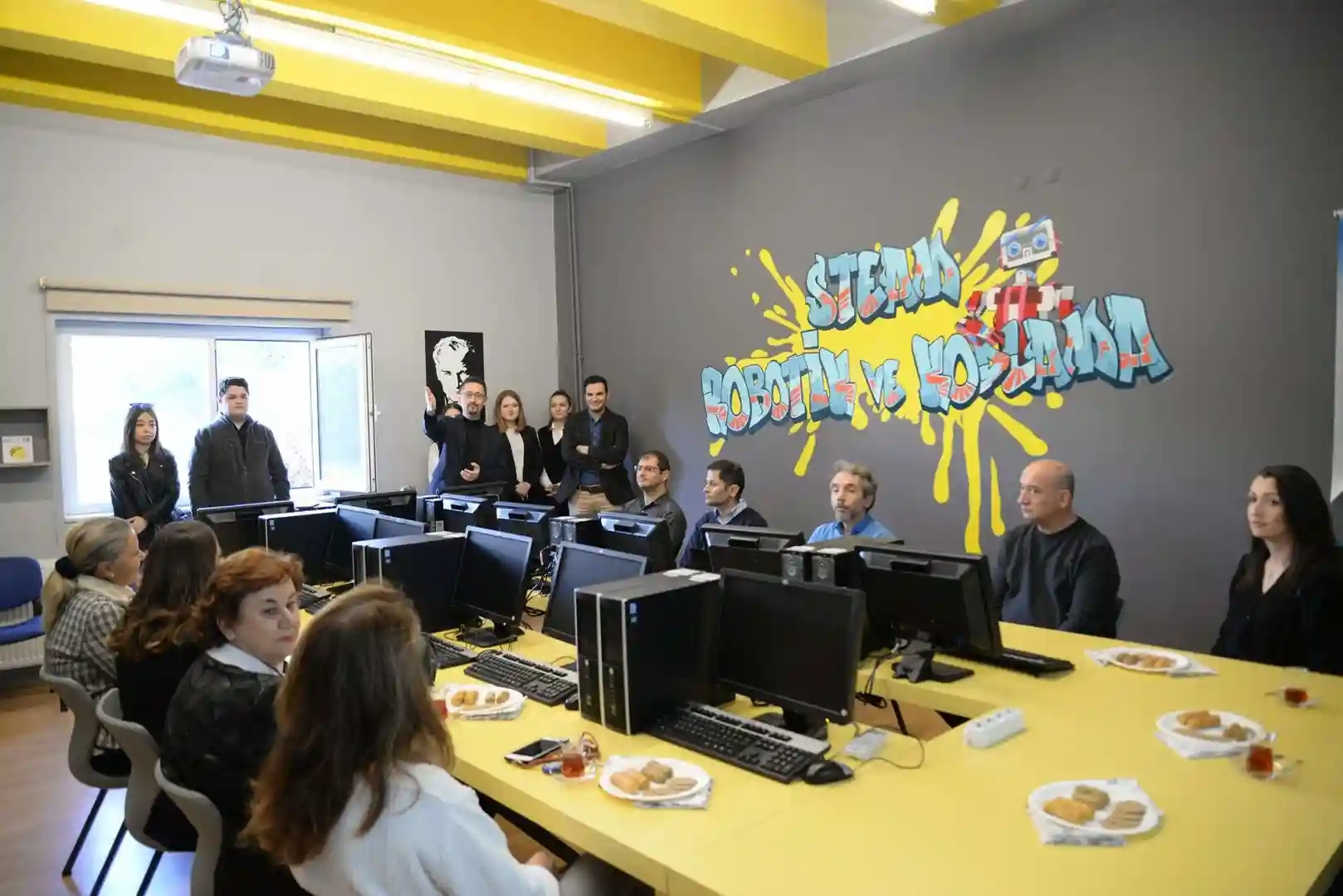 Konuşmaların ardından katılımcılar hep birlikte kurdele keserek Robotik ve Kodlama Atölyesi’ni hizmete açtı.