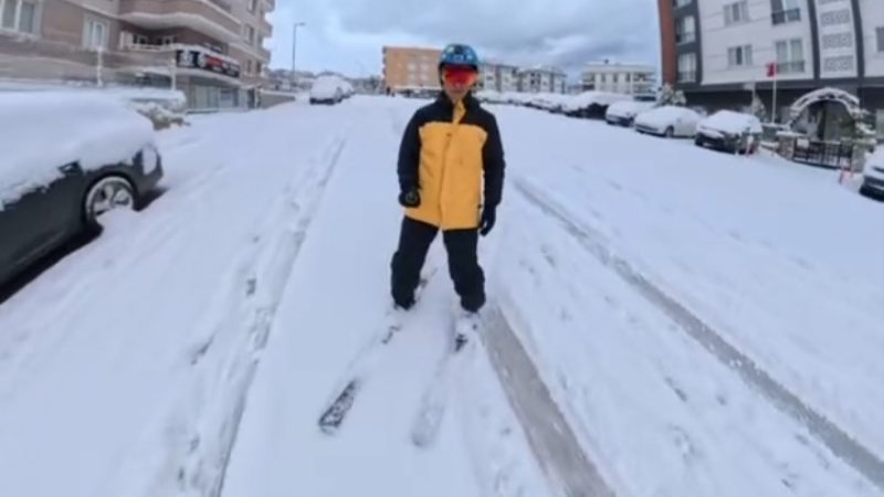 Kayak yaparken kendini kayda da alan vatandaş, karla kaplanan yollarda rahatlıkla ilerlediği anları sosyal medyada paylaştı. Görüntüler kısa sürede ilgi gördü.