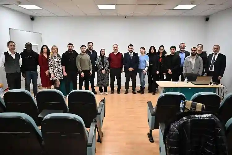 BURULAŞ yetkililerinin ulaşıma dair sunumları sonrasında gençlerle sohbet eden Başkan Aktaş, tecrübelerini paylaştığı bu organizasyon için moderatör Doç. Dr. Yüksel Okşak’a teşekkür etti.