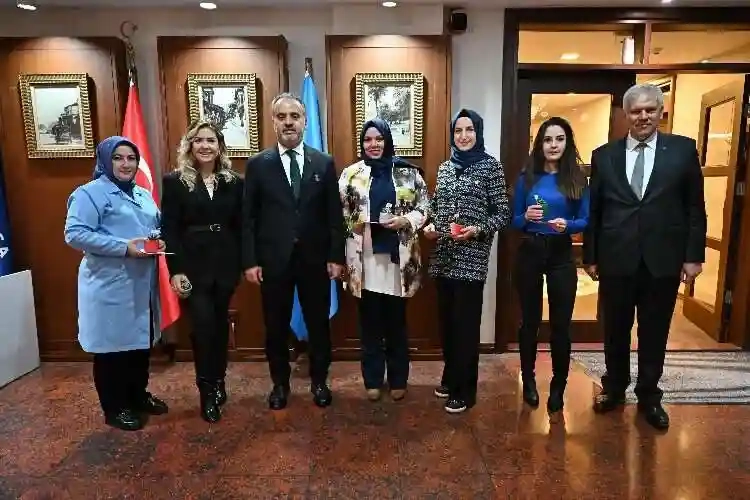 Bursa Büyükşehir Belediye Başkanı Alinur Aktaş, 8 Mart Dünya Kadınlar Günü dolayısıyla BUSKİ’de çalışan kadın personelleri ziyaret ederek çiçek ve hediye takdim etti.