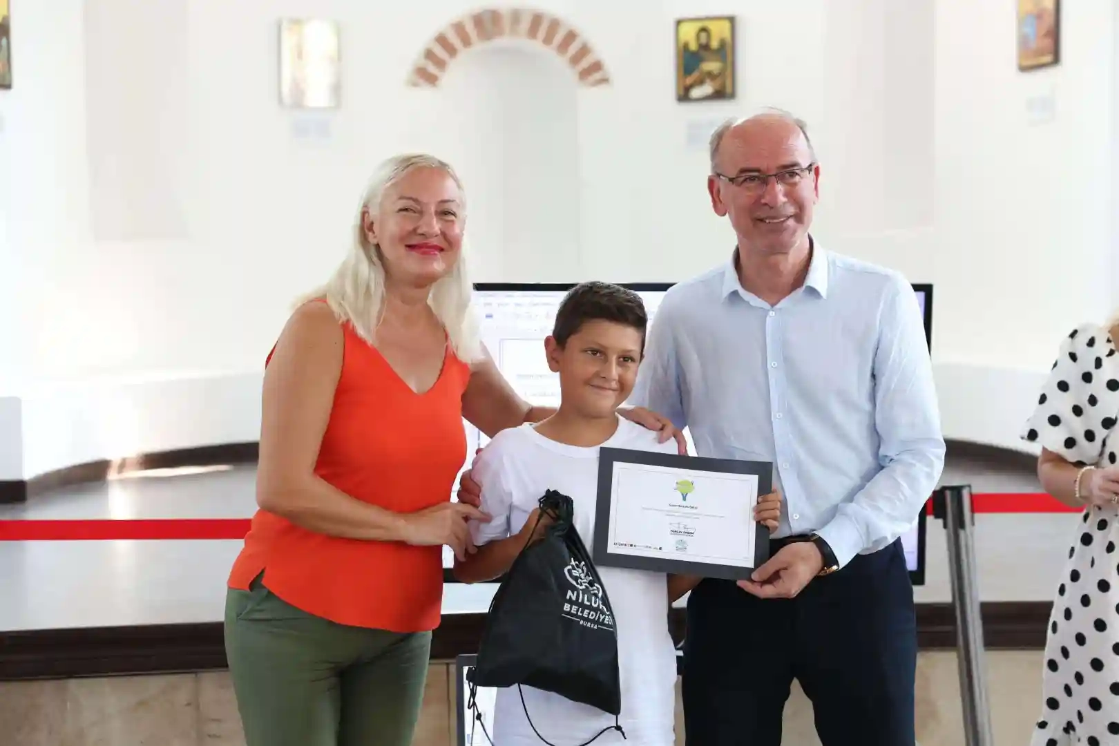 Nilüfer Belediye Başkan Yardımcısı Dr. Sibel Özer, Remzi Çınar, Osman Uçar ile Nilüfer Belediyesi Kültür ve Sosyal İşler Müdürü Nejla Aslan, proje sunumunun ardından eğitime katılan çocuklara belgelerini verdi.