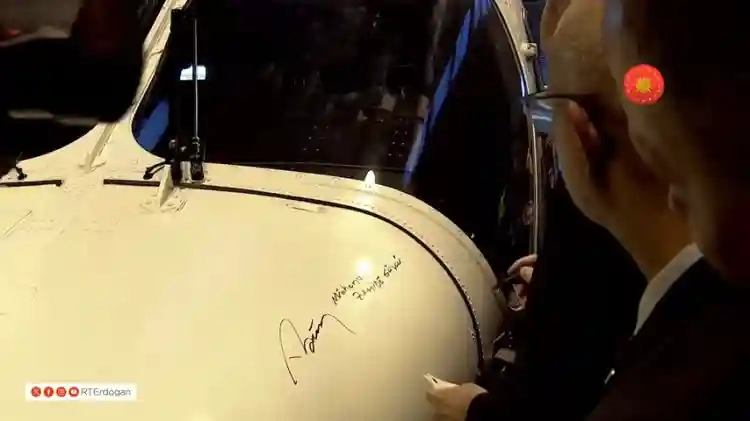 Gökbey'e imzasını atan Cumhurbaşkanı Erdoğan, TUSAŞ saldırısında şehit olan Mühendis Zahide Güçlü Ekici'nin de helikopterin üzerine ismini yazdı. Milli gurur Gökbey hakkında yetkililerden bilgi alan Cumhurbaşkanı Erdoğan, kokpite geçti.