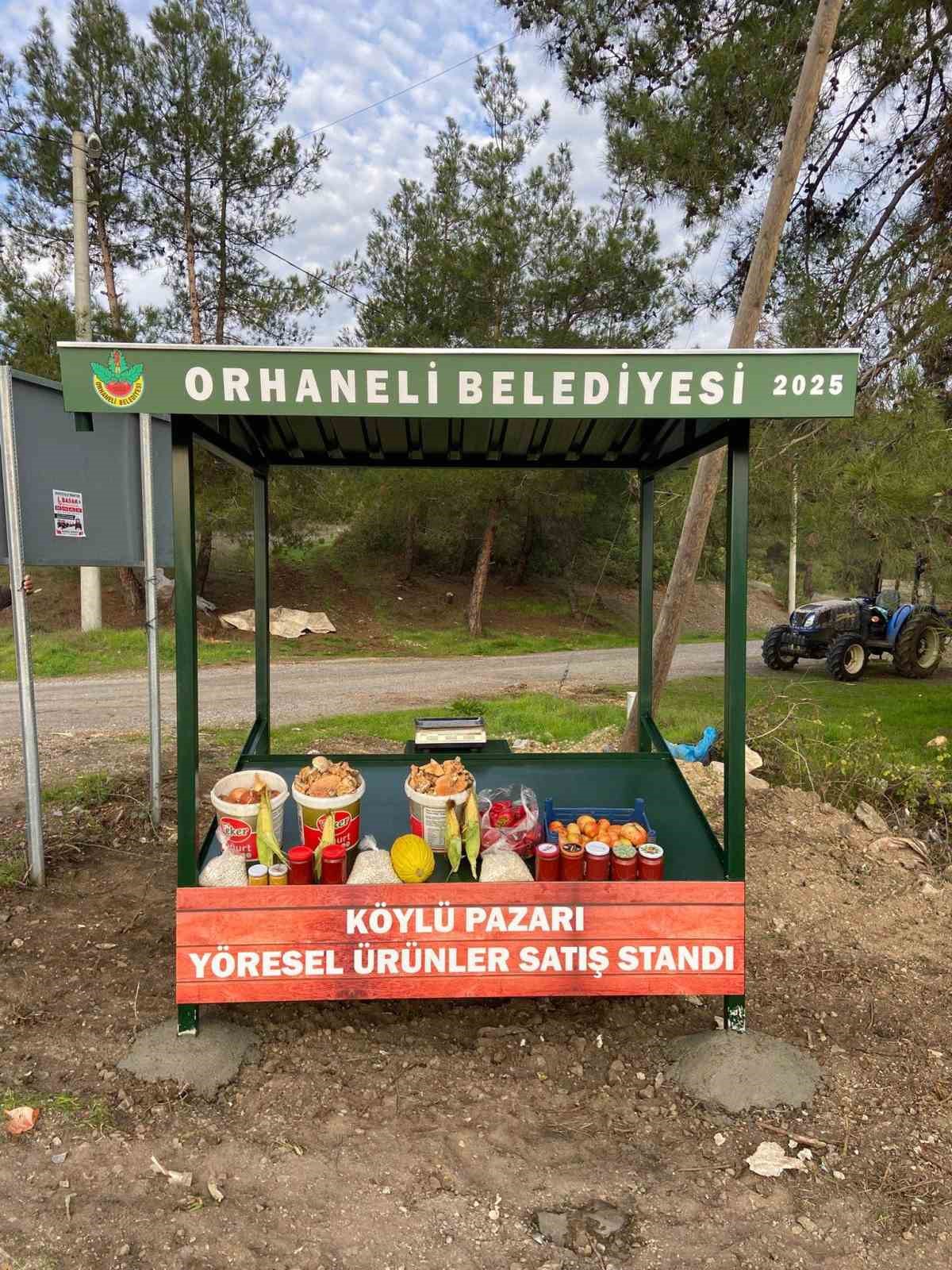 Yol güzargahında bulunan her mahalleye 5 er adet ürün satış standları yapıldı. Orhaneli Belediye Başkanı Ali Osman Tayır, "Köylümüzün kendi üretmiş oldukları meyve, sebze gibi organik ürünlerini satabilmeleri için Bursa yol güzargahında toplam 40 adet ürün satış standları yaptık. Amacımız köylümüzün kalkınması ve üretmiş oldukları ürünleri satabilmeleri yağmur, çamur ve güneşte ürünlerini rahat bir şekilde satacaklar. Köylümüze bol bereketli günler ve kazançlar diliyorum" dedi.